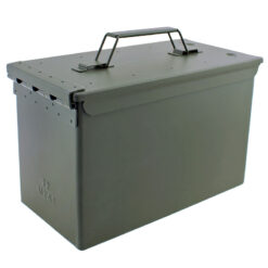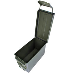 Kovová bedňa na uloženie munície, alebo iných predmetov. Bedňa je vytvorená z kvalitného kovu hrúbky cca 2mm s vodeodolným vekom, ktoré je doplnené o gumové tesnenie. Pre jednoduchšie prenášanie je vybavená dvomi úchytkami – hore na veku a vpredu pod sklopným uzáverom.