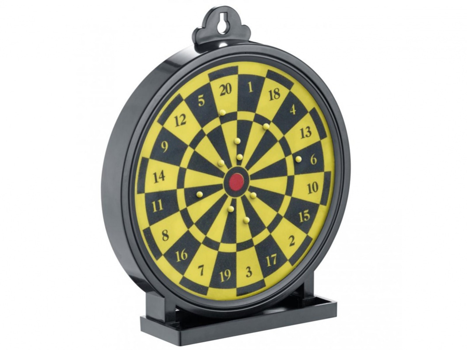 Kruhový terč stojí na podstavci, kam po zásahu BB strelivo padá.