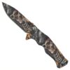 Odolný rescue nôž s čiernou kombinovanou čepeľou a oranžovou rukoväťou v realtree camo dizajne je ideálny nielen pre outdoor, ale aj ako záchranársky nástroj.
